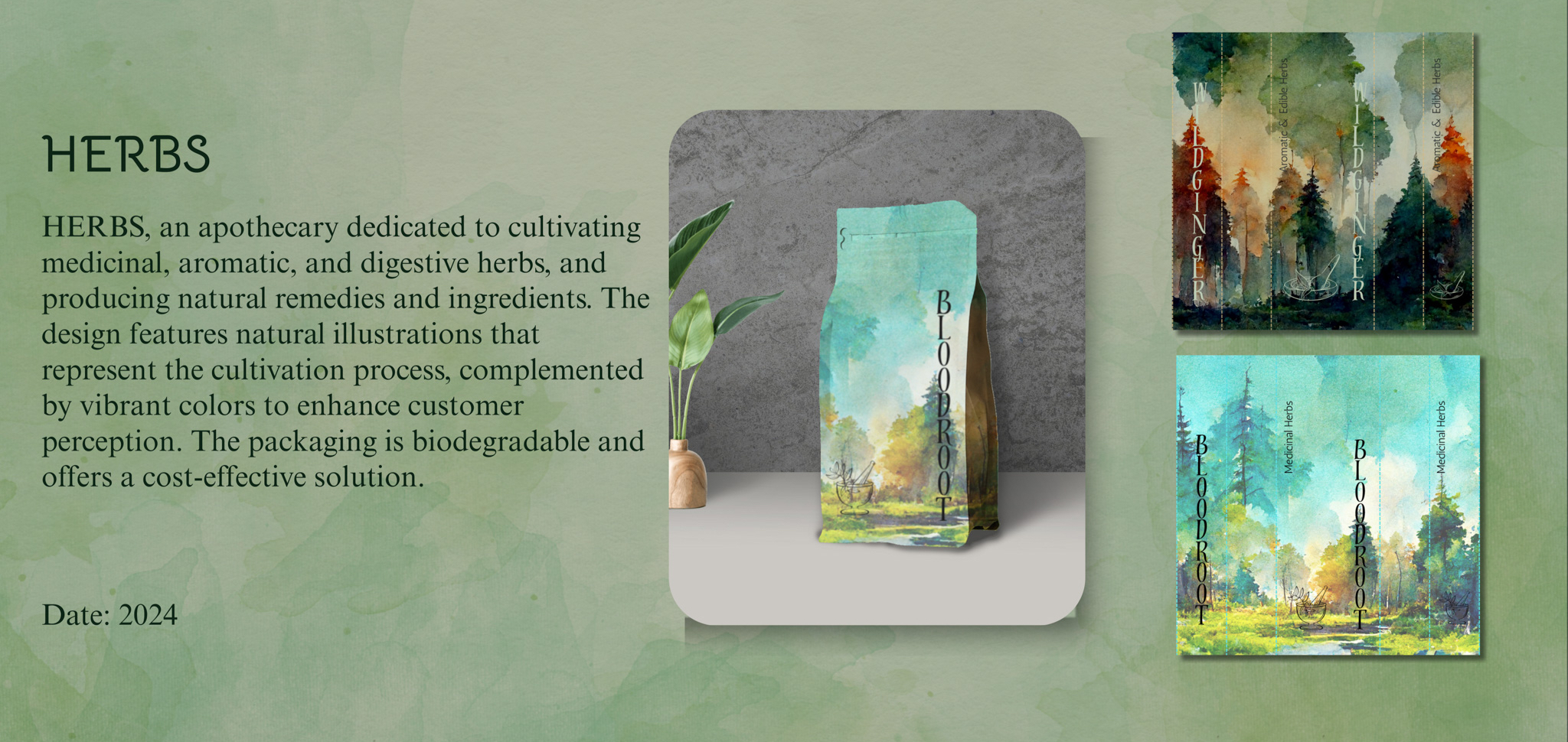 Bringing client identity and logo to life with professional digital rendering software, focusing on mood-invoking color and artisanal detailing.